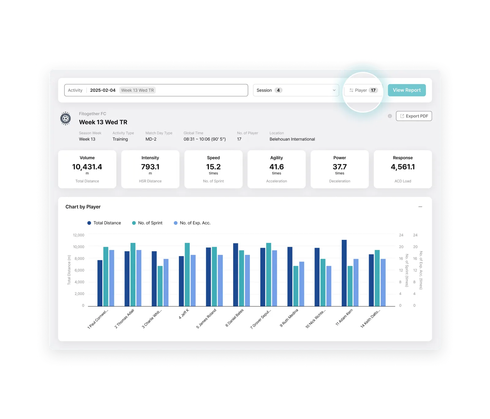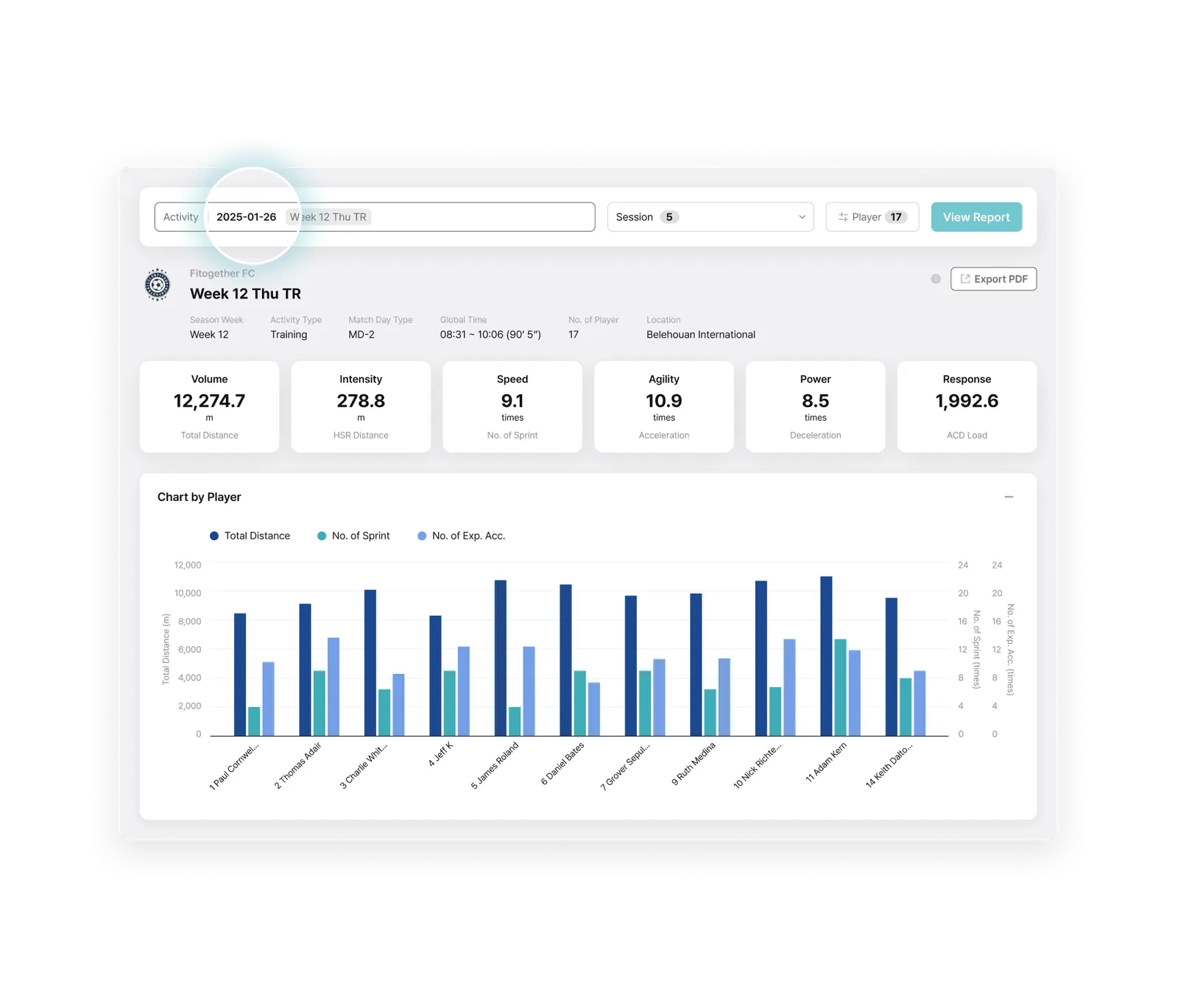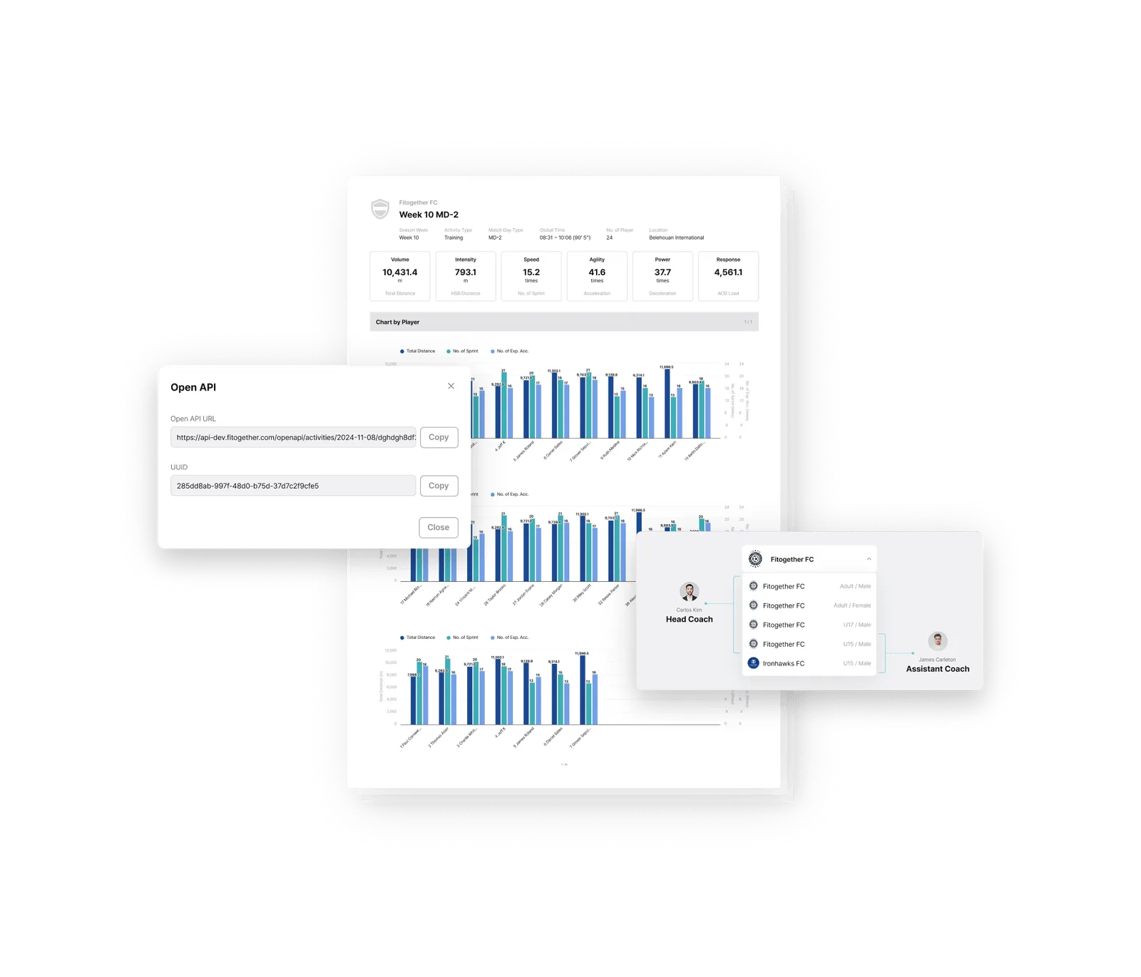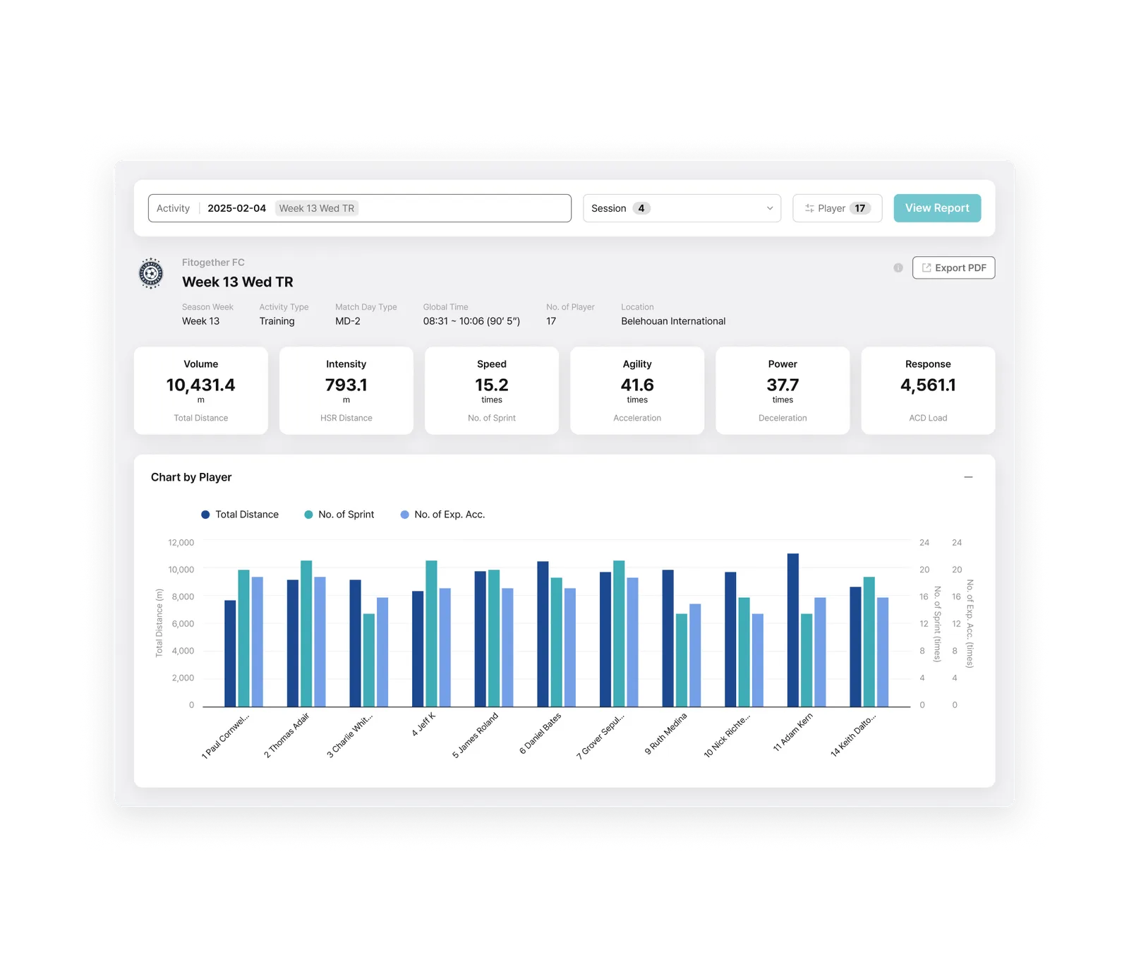 Built as one of the few truly cloud-native platforms in elite sport, Analytics enables teams to structure, analyze, visualize, and reuse performance data with ease. Powered by Fitogether’s fully cloud-native architecture, data from Cell devices is centrally stored and deeply analyzed. Training and match data are organized to support objective evaluations for individuals and teams, with customizable metrics reflecting each player’s unique profile.