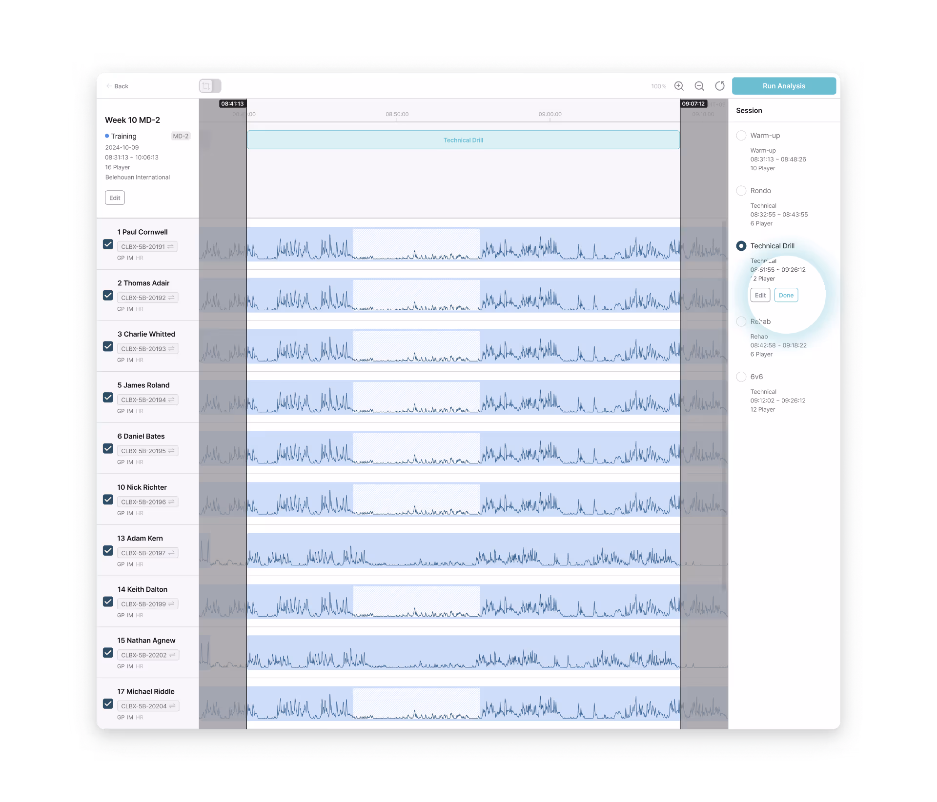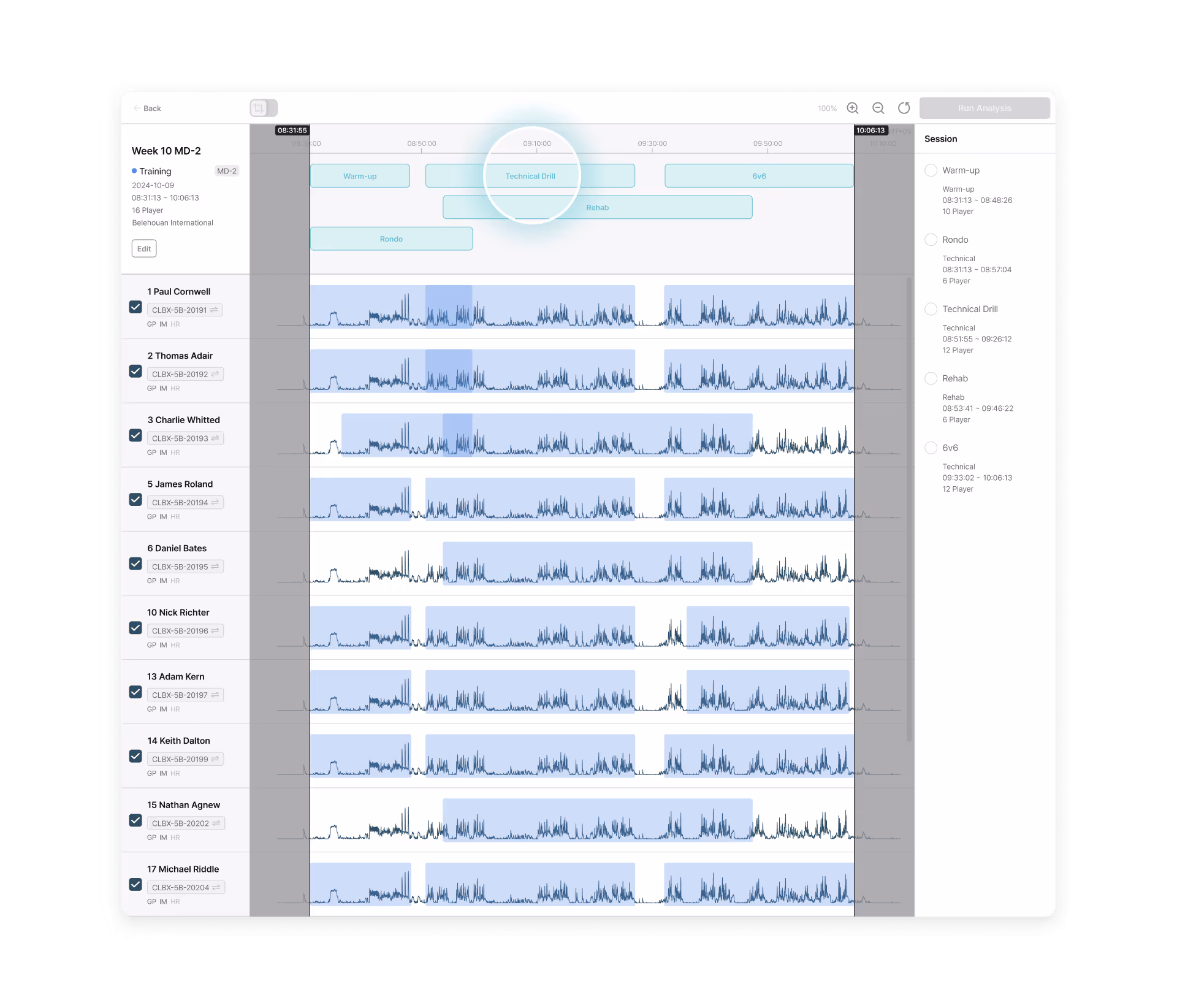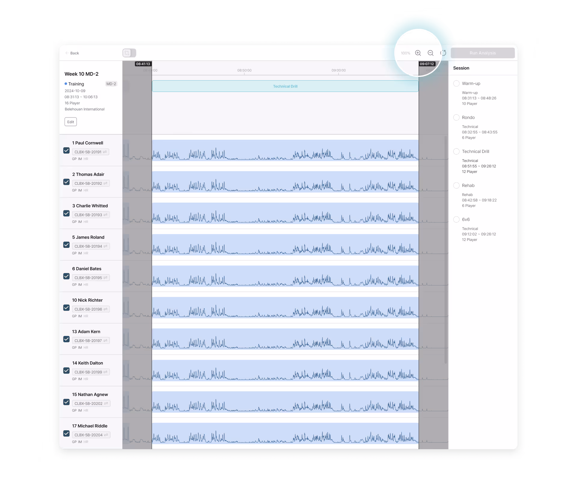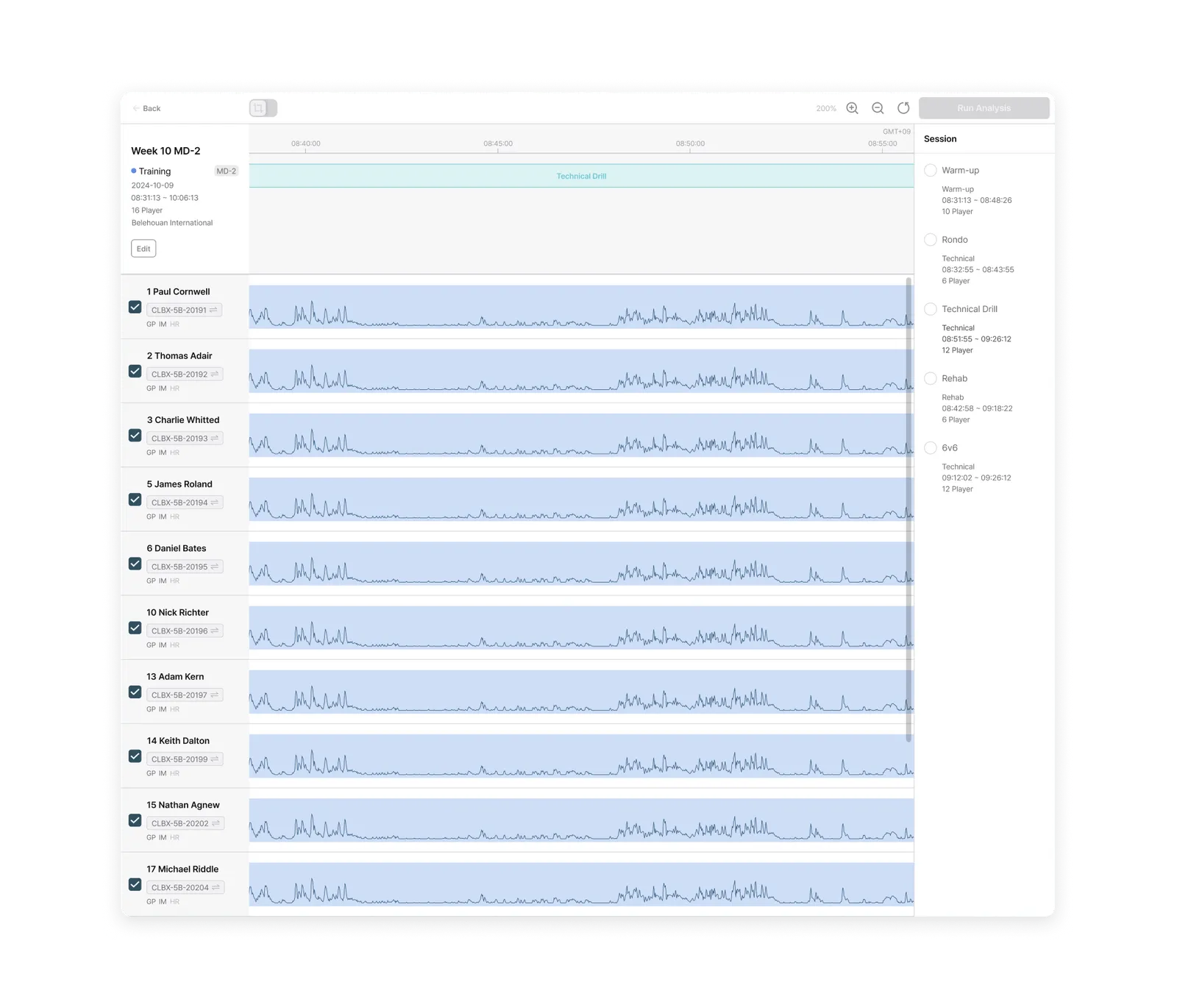 Built as one of the few truly cloud-native platforms in elite sport, Analytics enables teams to structure, analyze, visualize, and reuse performance data with ease. Powered by Fitogether’s fully cloud-native architecture, data from Cell devices is centrally stored and deeply analyzed. Training and match data are organized to support objective evaluations for individuals and teams, with customizable metrics reflecting each player’s unique profile.