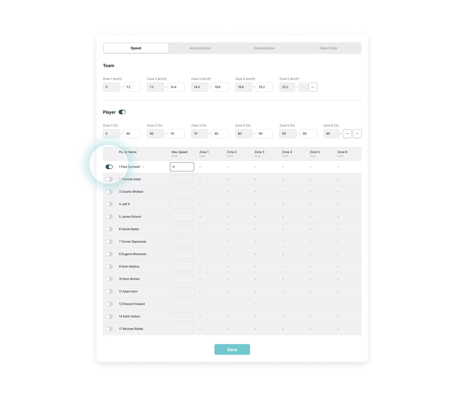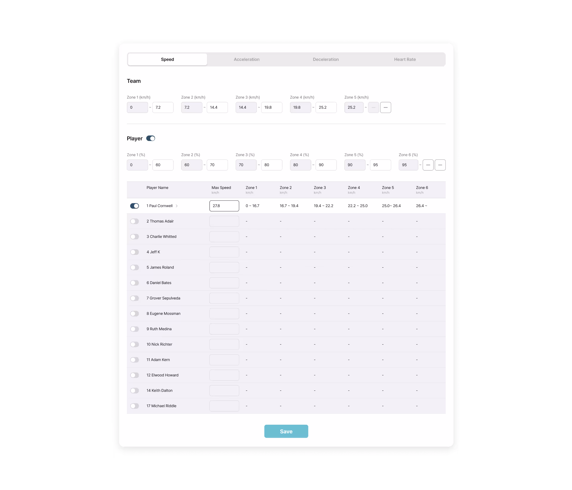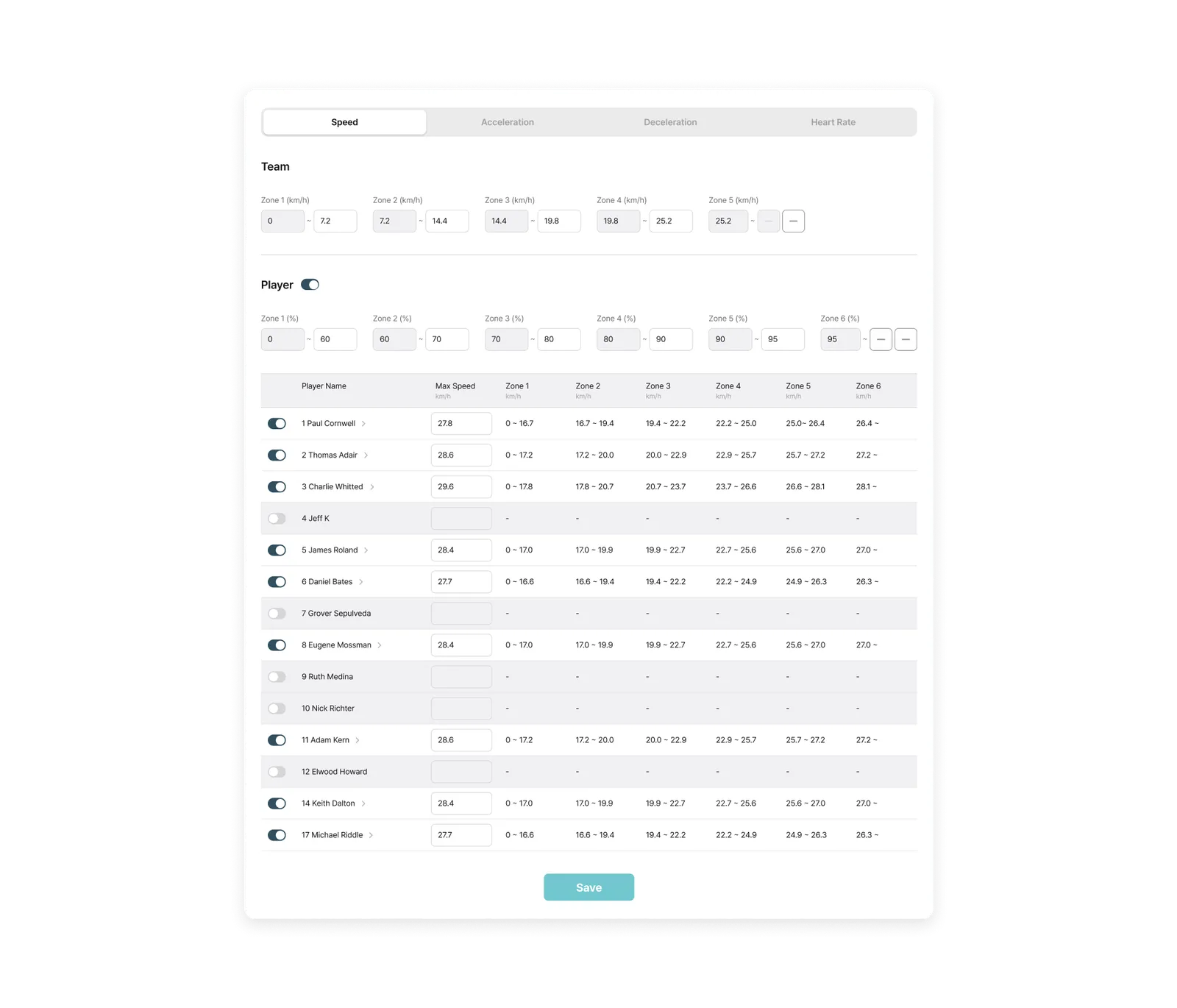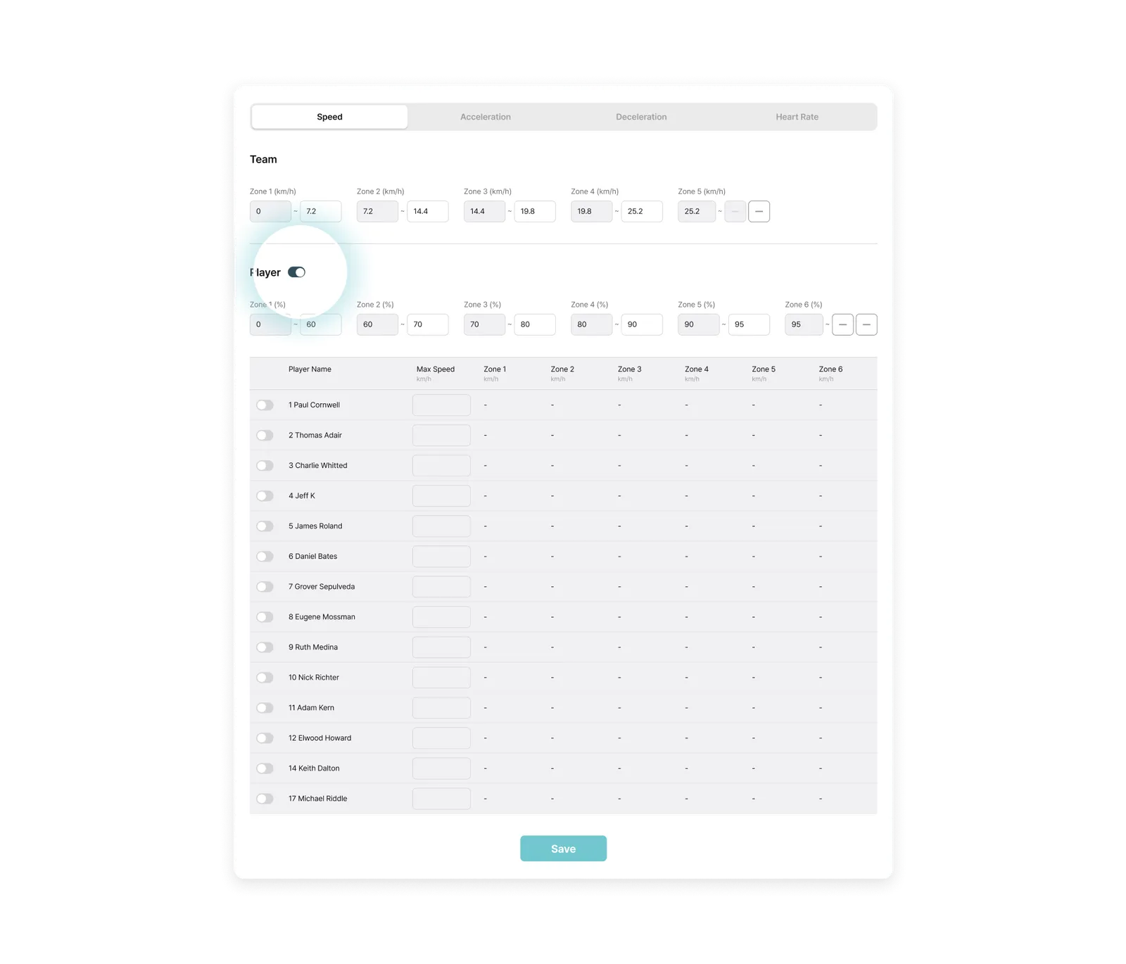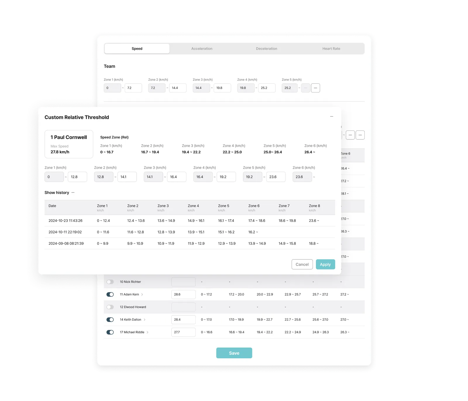 Team Level: Shared Threshold and Zone settings for the entire team (expandable up to 10 zones)