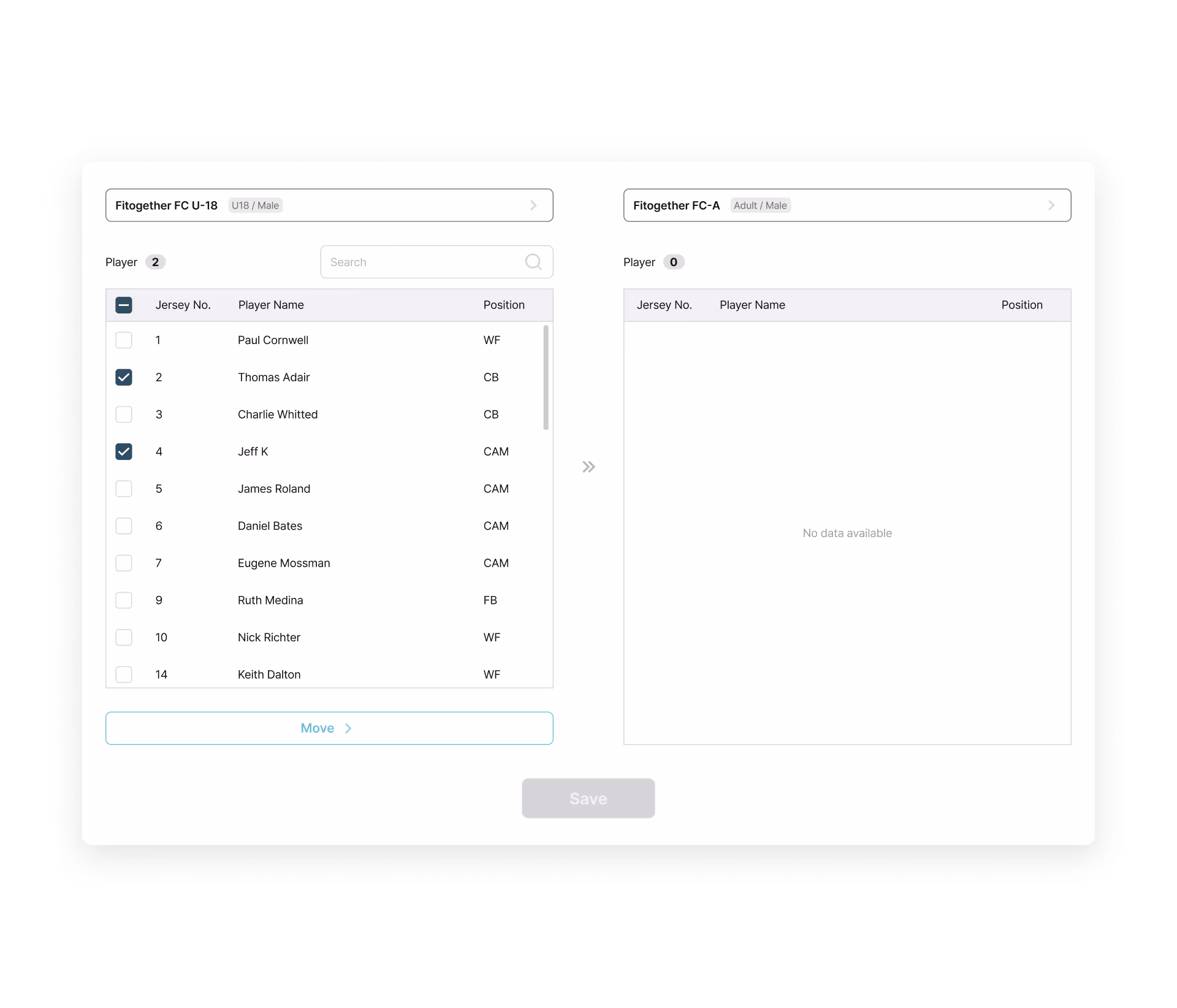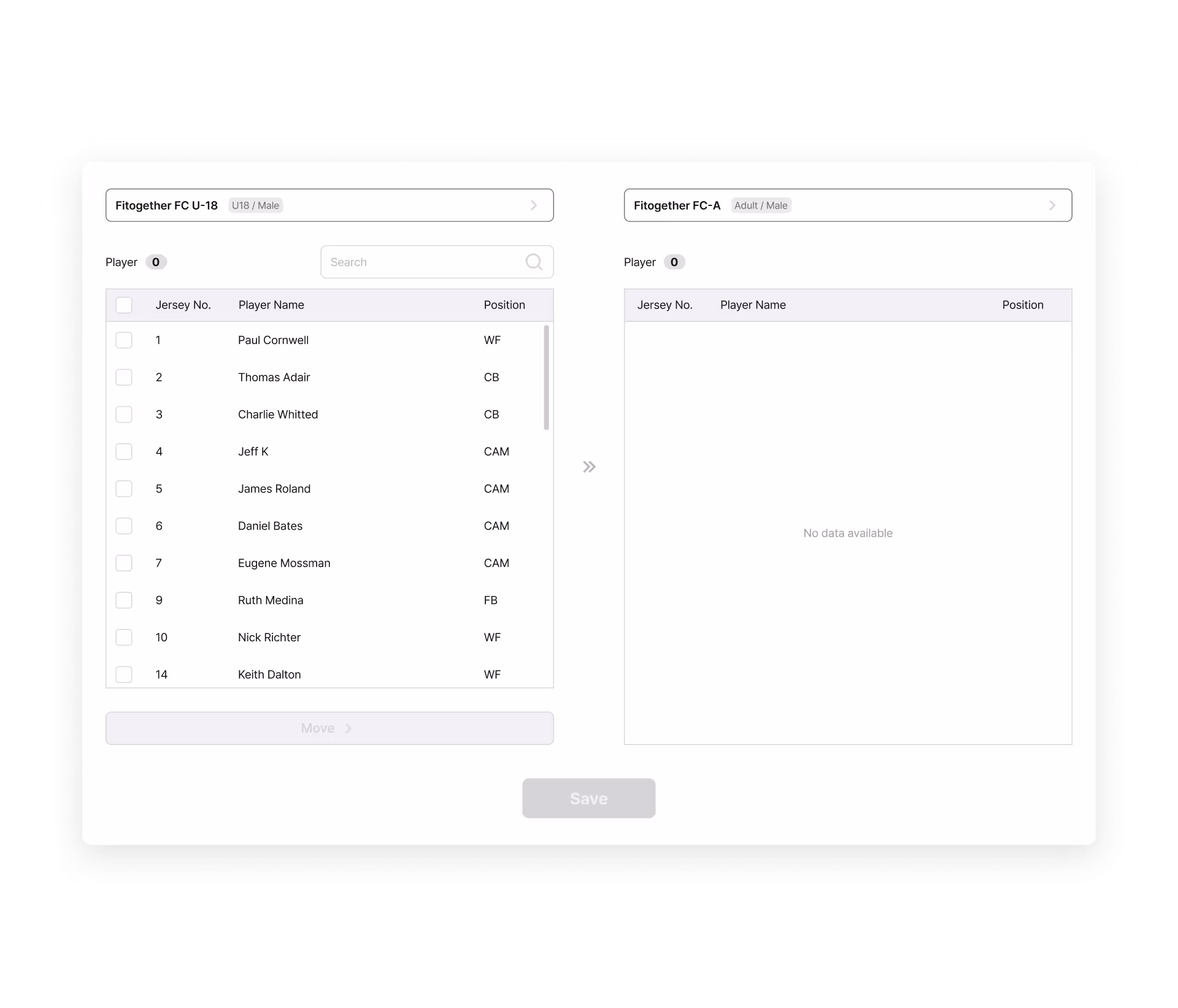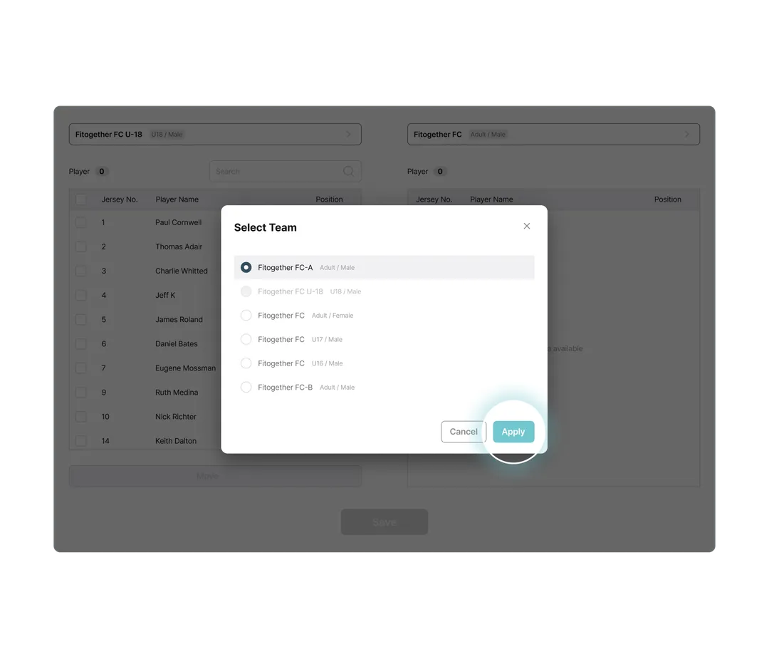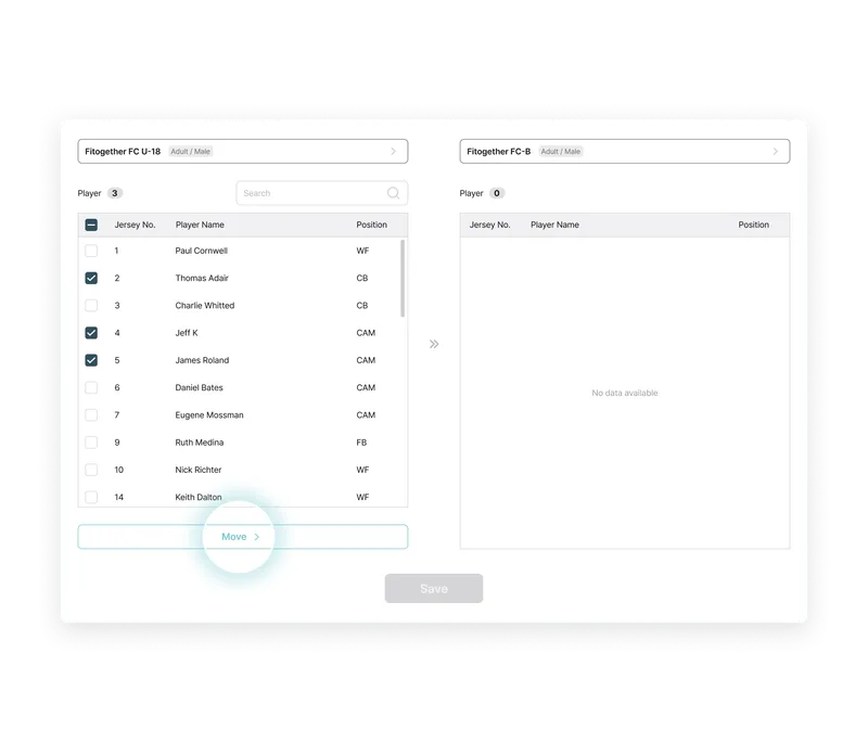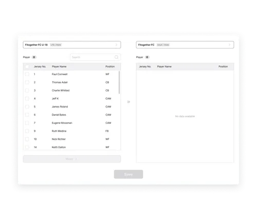 Data Transition: Player profile & device transfer with previous team data access